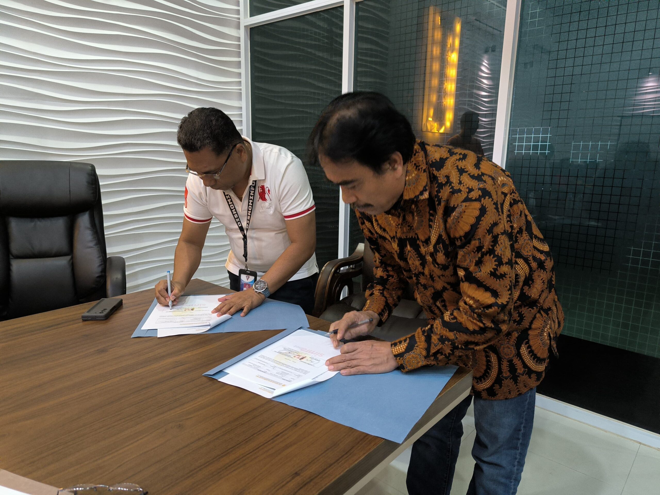 Penandatanganan ini dilakukan oleh Plt.Kepala Diskominfo dan Persandian Kota Ambon, Ronald H. Lekransy dan Plh Direktur Utama (Dirut) PT. Sinar Mas Dirgantara, Nanang Sutisna, diruang Rapat Command Center (CC) Lantai IV Balai Kota Ambon.