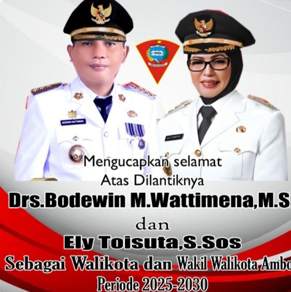 sinar maluku. com – Bodewin M Wattimena dan Elly Toisuta secara resmi mengemban tugas sebagai Wali Kota dan Wakil Wali Kota Ambon masa jabatan 2025-2030.