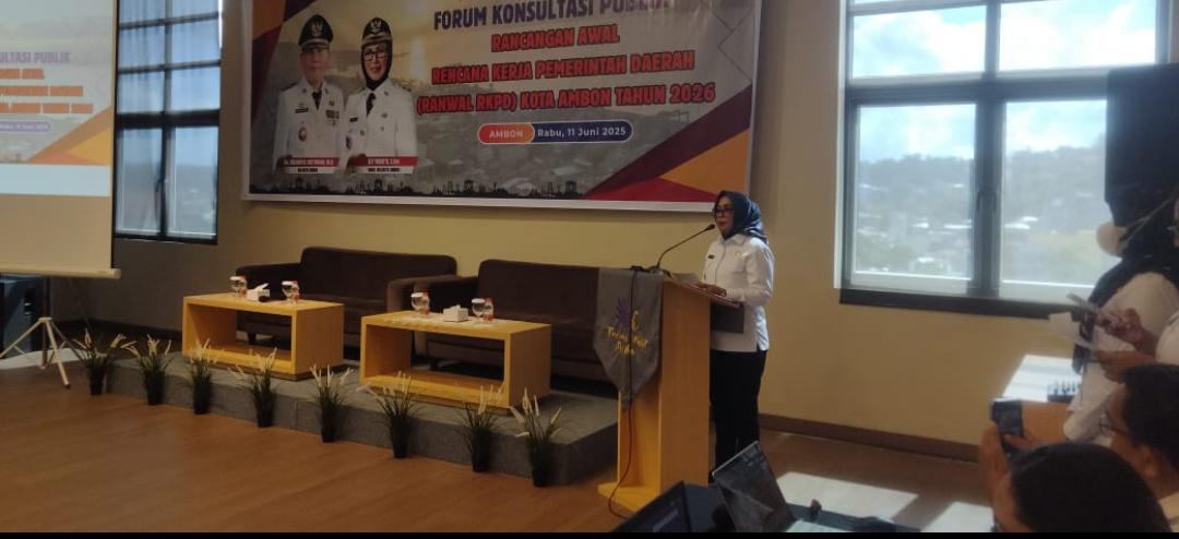 sinar maluku. com – Wakil Wali Kota Ambon, Ely Toisuta, membuka Forum Konsultasi Publik Rancangan Awal Rencana Kerja Pemerintah Daerah (RANWAL RKPD) Tahun 2026 di lantai 7 Hotel Kamari, Kecamatan Sirimau, Ambon, pada Rabu (11/6/2025). Kegiatan ini bertujuan untuk mendapatkan masukan dari berbagai pihak terkait prioritas pembangunan Kota Ambon di tahun 2026, yang merupakan tahun kedua pelaksanaan Rencana Pembangunan Jangka Menengah Daerah (RPJMD) Kota Ambon 2025-2029.