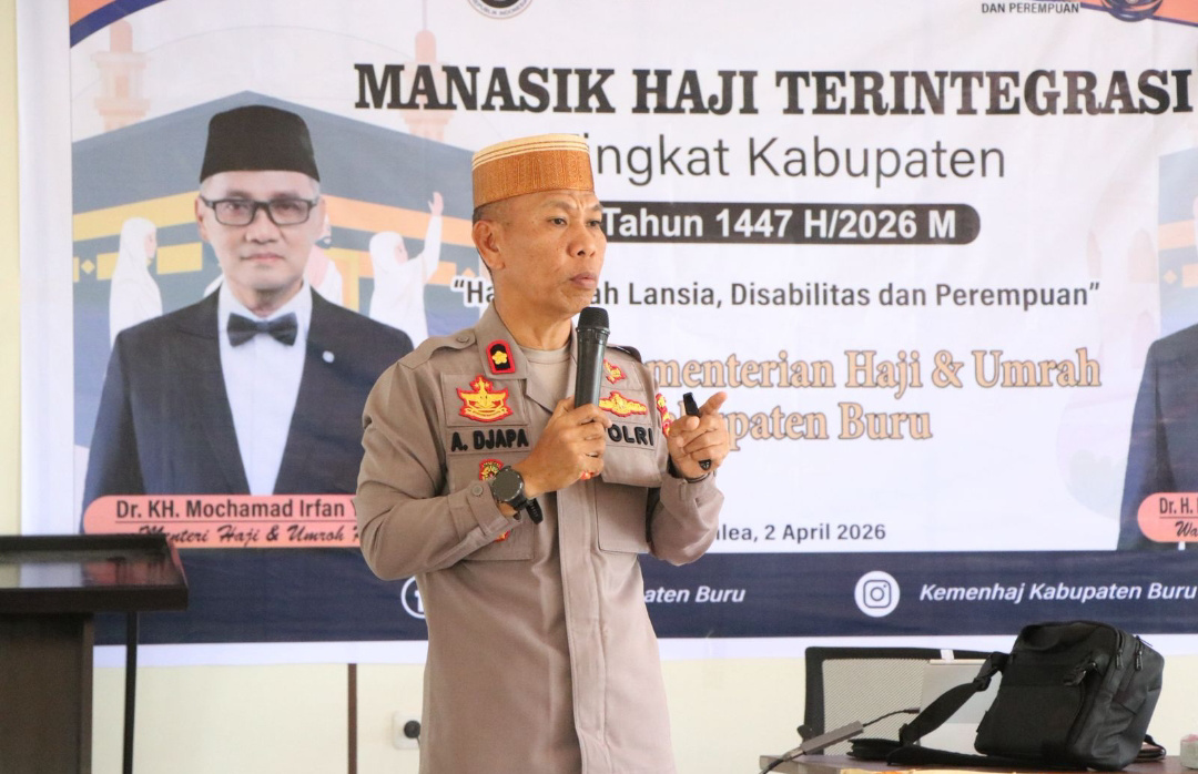 sinarmaluku. com – Wakapolres Buru, Kompol H. Akmil Djapa, menjadi narasumber dalam kegiatan Manasik Haji Terintegrasi tingkat Kabupaten Buru yang dilaksanakan di Aula Kantor Kementerian Agama Kabupaten Buru, Kamis (2/4/2026).