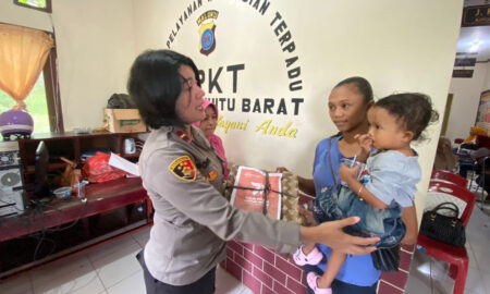 sinarmaluku. com – Kapolsek Leihitu Barat (Lehibar) Ipda Sofia Ch Alfons bersama anggota memberi makanan tambahan kepada anak anak balita di kawasan...